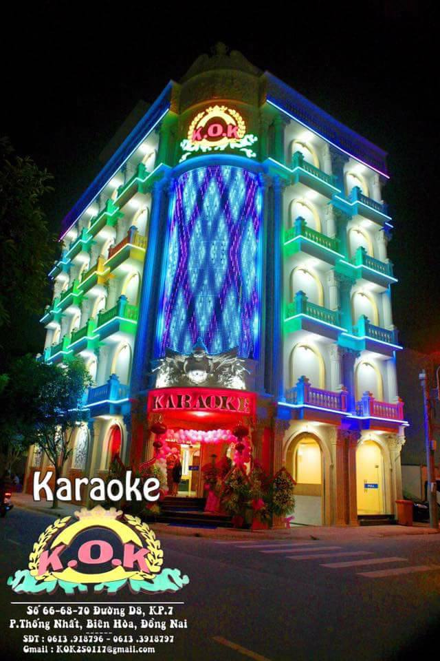 Karaoke KOK nổi bật giữa lòng Biên Hòa với lối kiến trúc hiện đại, không gian lộng lẫy cùng dàn âm thanh cực chất. Ngay khi đặt chân tới đây, bạn sẽ cảm nhận được sự sang trọng và chuyên nghiệp trong từng chi tiết nhỏ nhất, từ ánh đèn lung linh đến phòng hát tiện nghi.