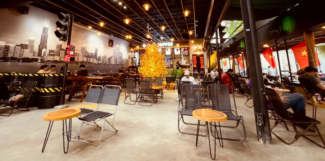 Cộng Cà Phê chào đón bạn đến với không gian độc đáo và đầy cảm hứng, nơi bạn có thể trút bỏ mọi căng thẳng và đắm mình trong hương vị cà phê đặc biệt. Từng chi tiết trong thiết kế của Cộng Cà Phê đều mang đậm dấu ấn lịch sử và văn hóa Việt Nam, tạo nên một không gian ấm cúng và hoài niệm. Từ những bức tranh tuyên truyền cổ điển đến những chiếc máy khâu xưa, mỗi góc quán như một lời thì thầm về một thời đã qua.