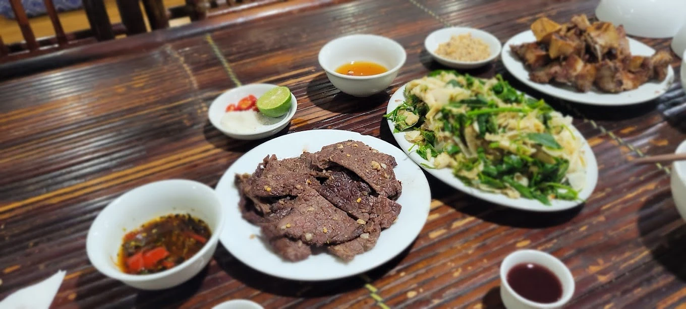 Đến với Điện Biên, đừng bỏ lỡ cơ hội thưởng thức những món ăn đặc sản thơm ngon khó cưỡng tại nhà hàng đậm chất dân tộc này. Từ hương vị sườn nướng đậm đà đến sách xào giòn dai, mỗi món ăn đều được chế biến tỉ mỉ, mang đến một bữa ăn tròn vị và đáng nhớ. Không gian thoáng mát, rộng rãi và trang trí toàn gỗ sẽ đưa bạn vào một không gian ấm cúng và gần gũi.